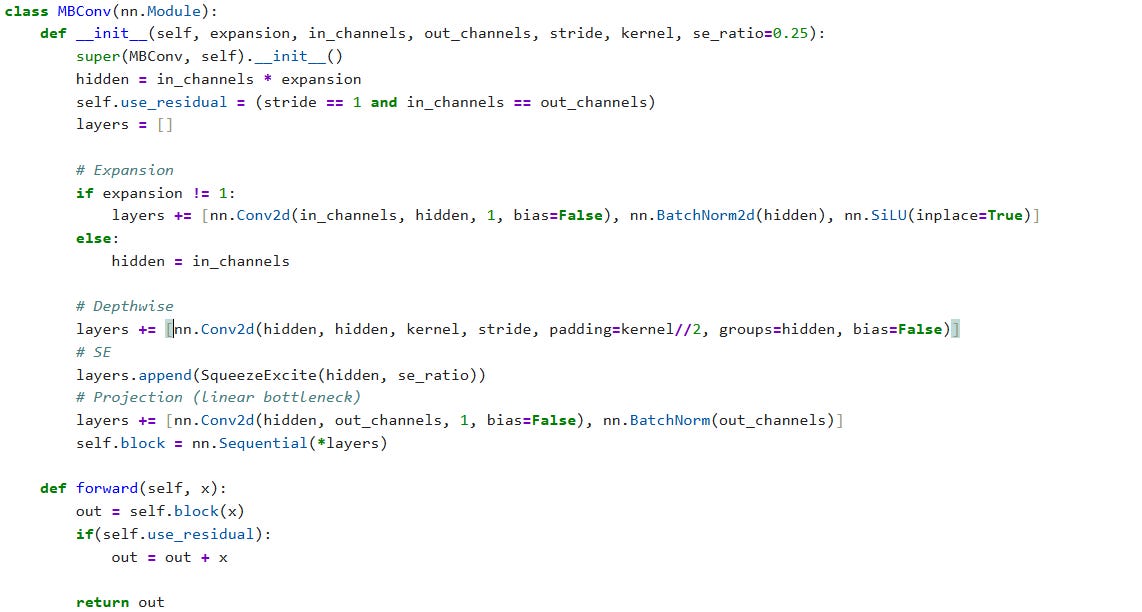 An MBConv block combines three ideas: