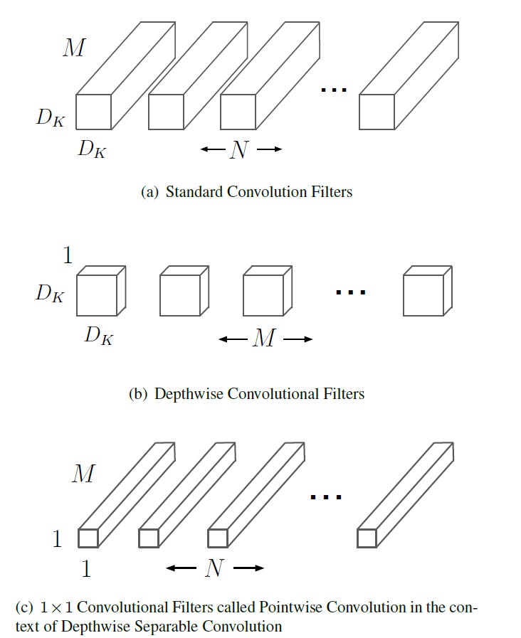 Core idea is to factorize a standard convolution into two operations: