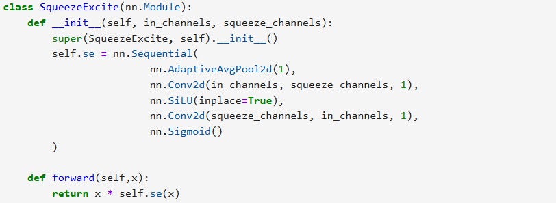 Bias terms in SE layers affect parameter count. Torchvision’s EfficientNet includes bias terms in SE convolutions. Removing these biases reduces parameter count but creates a leaner variant rather than an exact reproduction of the reference implementation.